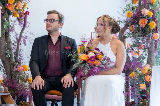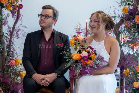 Il y avait également Clémentine, Prix de la Photogénie 2020 accompagnée de son chéri, Théo le mentaliste. Ils ont pour l’occasion joué les mariés du jour et participé à la cérémonie laïque présentée par Marion.