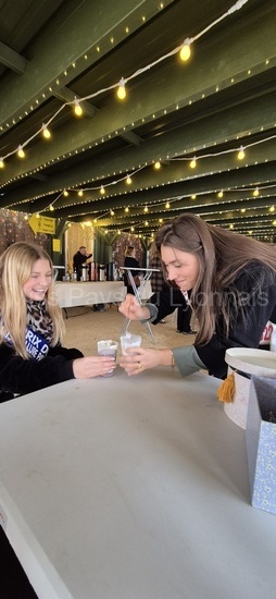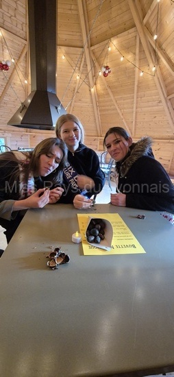 Elles ont commencé par échanger avec les personnes présentes en buvant un bon chocolat chaud. Elles ont aussi découvert le jus de pomme chaud qu’elles ont beaucoup aimé.