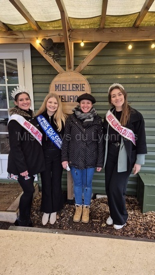 Le samedi 6 décembre, Mégane Miss Allure Pays du Lyonnais 2025, Kathleen Prix du Comité 2025 et Clara, Miss Allure Pays du Lyonnais 2022, se sont rendues à la Ferme Mielifique à Mornant pour le marché de Noël.