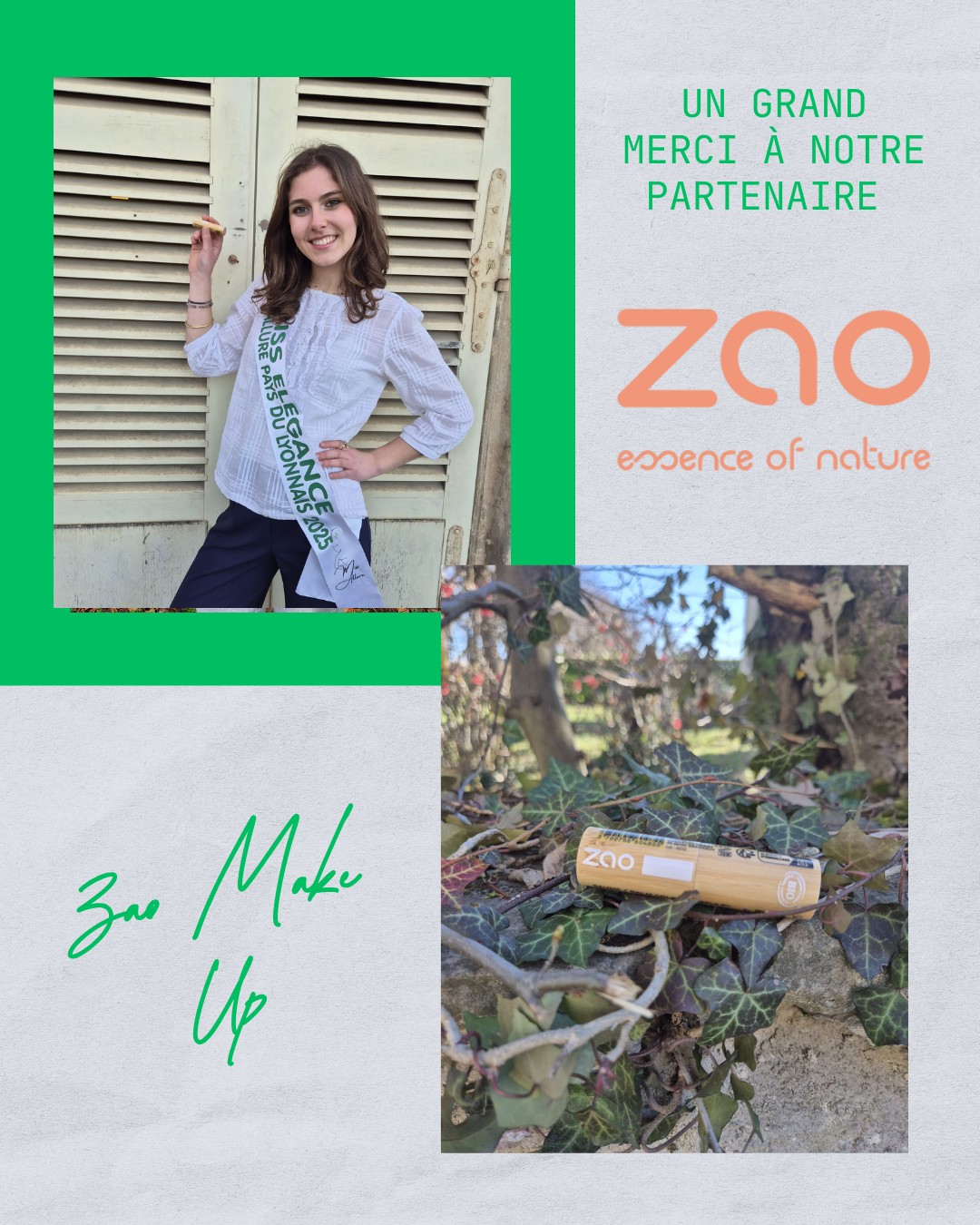 À l’issue de l’élection du 25 octobre 2025, Amélie s’est vu décerner l’écharpe de Miss Élégance de Miss Allure Pays du Lyonnais 2025.