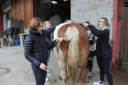 Elles ont tout d’abord préparé Altesse en la pansant et en l’attelant.