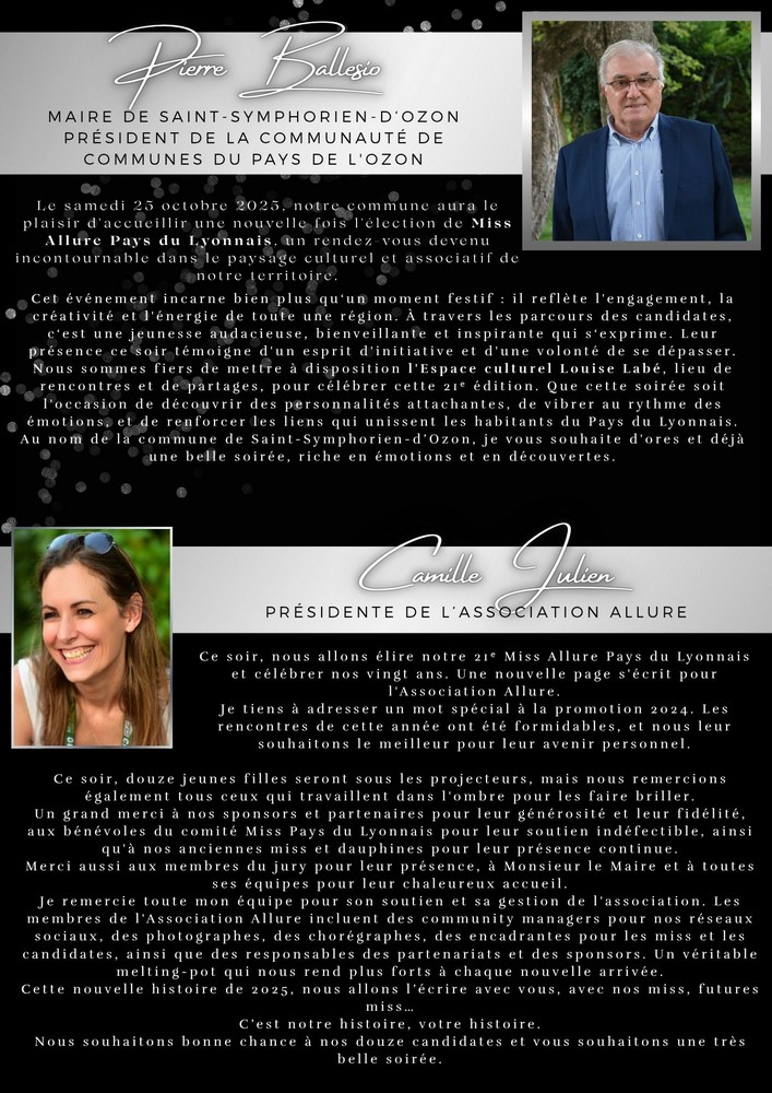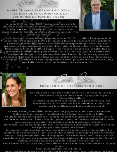 Programme Miss Allure Pays du Lyonnais 2025 Consultez notre programme en cliquant sur les sections ci-dessous.