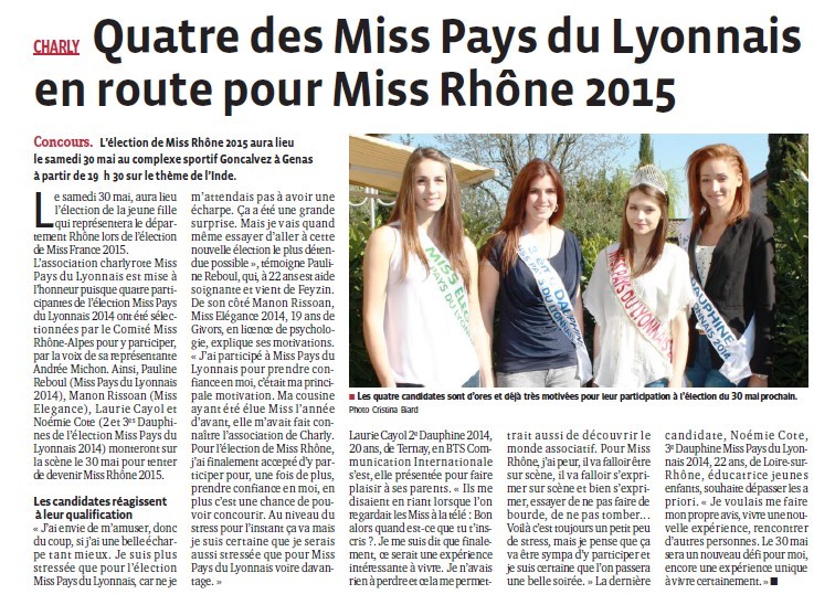 Presse : Quatre des Miss Pays du Lyonnais en route pour Miss Rhône 2015
