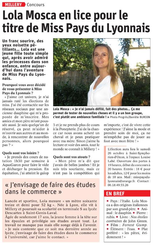 Presse : Lola en lice pour le titre de Miss Pays du Lyonnais